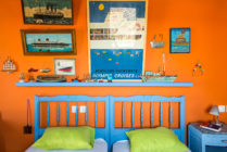 Σε τροχιά γύρω απ το ροζ σπίτι βρίσκονται τέσσερις μικροί ξενώνες που εγκαταστήσαμε μέσα στον στάβλο, την αποθήκη, τον αχυρώνα, το μαντρί. Χτίσαμε κι έναν καινούργιο, για να μην ξεχάσουμε ότι είμαστε αρχιτέκτονες. Καθένας με την δική του ατμόσφαιρα.
