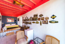 The interior of each house was turned into a “cabinet of curiosities”, dedicated to the “Modest Arts”: Lithographs, ceramic cicadas, souvenirs, ship models, posters, old toys, religious offerings, globes, sea shells and mirrors from the flea markets of Athens and Paris and bazaars we visited from our travels. There is a contrapuntal relation between these objects and the works of contemporary art, which we happen to love very much.