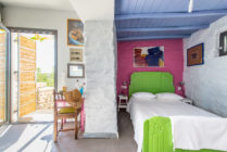 LouKouM, in a true sense, has opened our appetite. The bold, robust buildings, constructed before the 1930s, were renovated with respect to tradition, slightly broken, by no means fake, with playfulness, lots of humor and simple materials, mostly found on the island. The past was enhanced with a sense of modern audacity, rather than fidelity. However, hardly anything was changed, with the exception of a window that was opened on the north side —an architectural heresy, which allows a view of Ano Syros— and a few square meters added here and there that made space for bathrooms.